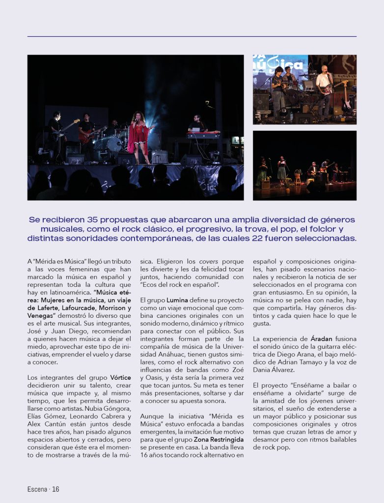 A “Mérida es Música” llegó un tributo a las voces femeninas que han marcado la música en español y representan toda la cultura que hay en latinoamérica. “Música etérea: Mujeres en la música, un viaje de Laferte, Lafourcade, Morrison y Venegas” demostró lo diverso que es el arte musical. Sus integrantes, José y Juan Diego, recomiendan a quienes hacen música a dejar el miedo, aprovechar este tipo de iniciativas, emprender el vuelo y darse a conocer.