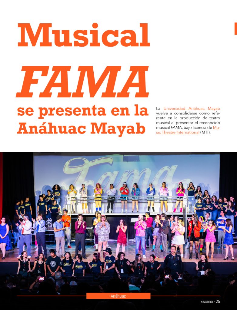 La Universidad Anáhuac Mayab vuelve a consolidarse como referente en la producción de teatro musical al presentar el reconocido musical FAMA, bajo licencia de Music Theatre International (MTI).