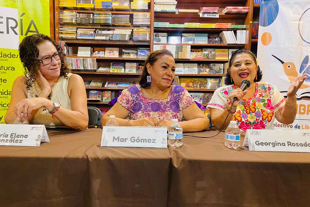 Por su parte, María Elena González, nacida en la ciudad de México, pero radicada en Mérida desde 1989, recuerda que, durante mucho tiempo, a las mujeres se les negó un espacio digno en la literatura, y prueba de ello era que escribían con seudónimos o eran escritoras fantasmas. La también integrante de Hipogeo Taller de Cuento y del “Colectivo Uayé”, exhortó a las presentes a atreverse a escribir para que la literatura vuele, viaje lejos y retumbe en todos lados.